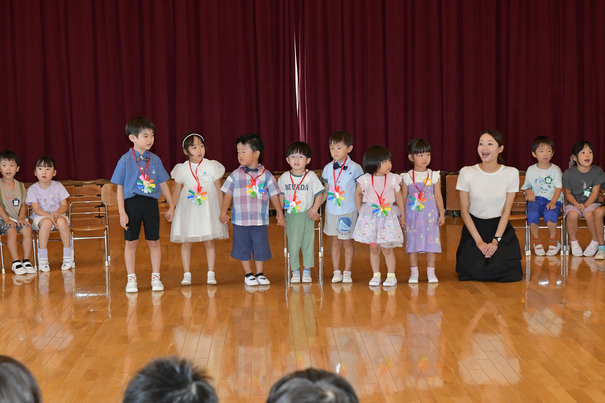 ピカピカの制服を着ておうちの方とみんなの先生と一緒に人形劇を見たり、お歌を歌ったりとあたたかい入園式です!