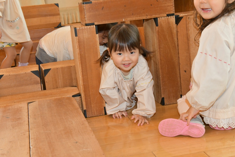 プレ保育1~2歳児対象「ナースリーサークルことり」は水曜日の9:45~11:00にホールにて親子で遊んだりリトミックを楽しんだりします。